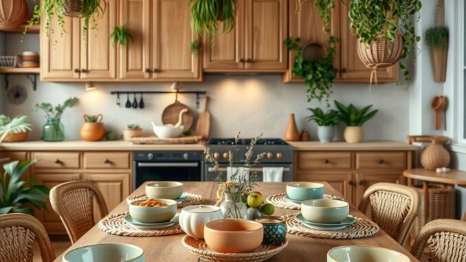 Jak łączyć naturalne materiały i kolory, by stworzyć przytulną kuchnię w stylu boho?