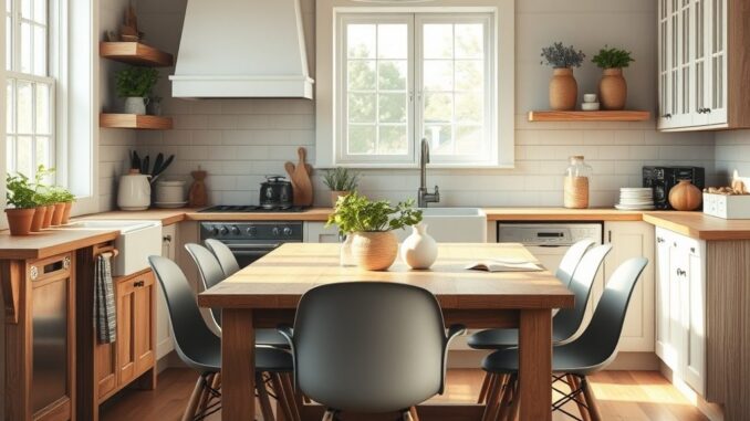 Wybór materiałów i mebli do kuchni farmhouse – równowaga między stylem a praktycznością